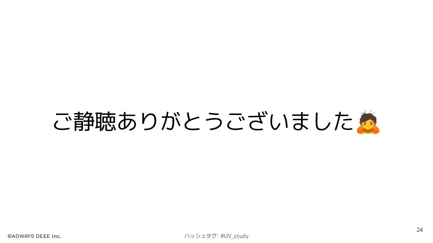 ©ADWAYS DEEE Inc. ハッシュタグ: #UV_study ご静聴ありがとうございました🙇 24