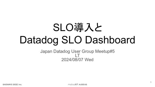 ハッシュタグ: #JDDUG ©ADWAYS DEEE Inc. SLO導入と Datadog SLO Dashboard Japan