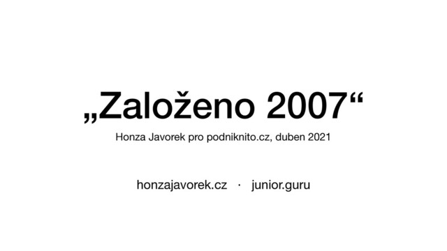 nápad začnu rozvíjet a zkusím „po ránech“ vytvořit prototyp. • Efektivita práce je tak raketová, že to pracovně vykolejí a je to poslední kapka k předchozí narůstající nespokojenosti v práci. • Mám „vatu“ a můžu si dělat co chci. Odcházím a chci si dát sabbatical, jenže místo toho pracuji na projektu. Jsem měsíce bez příjmu a je to jedno, mám minimální náklady. • Vzniká junior.guru, vše co jsem se doteď naučil jinde, napřimuji jedním směrem (programování, startupování, Open Source, marketing…) • Začíná pandemie