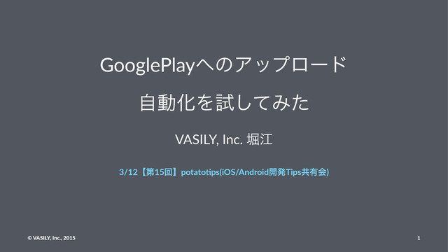 GooglePlayͷΞοϓϩʔυ ࣗಈԽΛࢼͯ͠Έͨ VASILY,(Inc.(ງߐ 3/12ʲୈ15ճʳpotato*ps(iOS/Android։ൃTipsڞ༗ձ) ©"VASILY,"Inc.,"2015 1