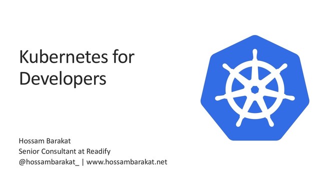 Kubernetes for Developers Hossam Barakat Senior Consultant at Readify @hossambarakat_