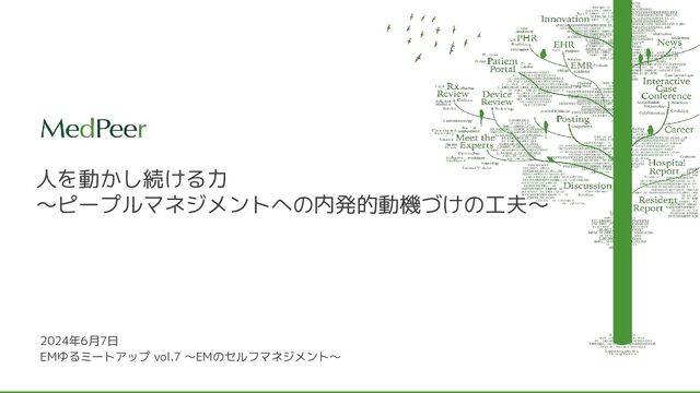 人を動かし続ける力 〜ピープルマネジメントへの内発的動機づけの工夫〜 2024年6月7日 EMゆるミートアップ vol.7 〜EMのセルフマネジメント〜