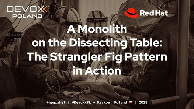 This talk briefly introduces the strangler fig pattern, which enables a smooth and step-wise transformation of monolithic applications into separate (micro)services. The main focus of this practical session is a demo scenario, showing step-by-step how to extract a particular part of an existing monolith into a separate service. During the demo, we will also get in touch with popular technologies such as Kubernetes, Apache Kafka, Debezium, and MongoDB.