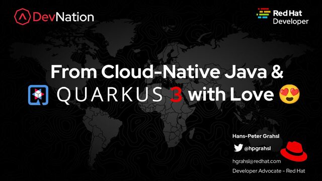 Over the last couple of years, our industry faced many naysayers doubting that Java is ready for today's, let alone tomorrow's application development requirements. Too rigid, too fat, too slow, and too resource hungry were the usual suspects to question Java's "fitness" for developing cloud-native applications targeting Kubernetes. One day, Quarkus came along to demonstrate the exact opposite. Join this fast-paced session to learn about Quarkus, which is a new breed of Java application development framework. It builds upon well-established standards and technologies as well as battle-tested libraries, many of which you might already master or at least be familiar with. If you want to experience some of the goodness and love that Quarkus offers around its dev services and native image building capabilities on top of GraalVM this talk is for you. After this session, you'll have a first impression about what it means and how it feels to develop supersonic subatomic Java applications for the cloud era.