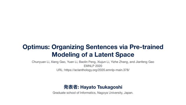 事前学習済み言語モデルを統合することによって構築される大規模Variational Auto-Encoder (VAE)モデルのOptimusと、その論文について解説した資料です。 Optimusを支えるVAEの目的関数の導出から丁寧に紹介します。