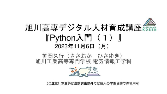 第2回「Python入門(1)」2023年11月6日資料