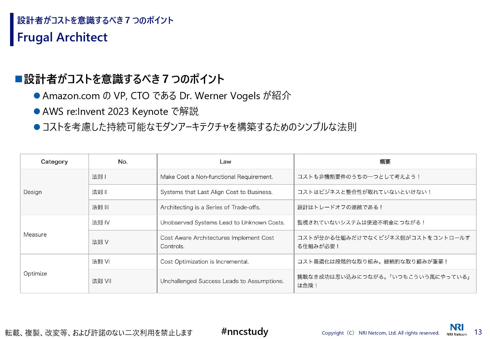 13. 13 Copyright(C) NRI Netcom, Ltd. All rights reserved. 転載、複製、改変等、および許諾のない二次利用を禁止します #nncstudy
