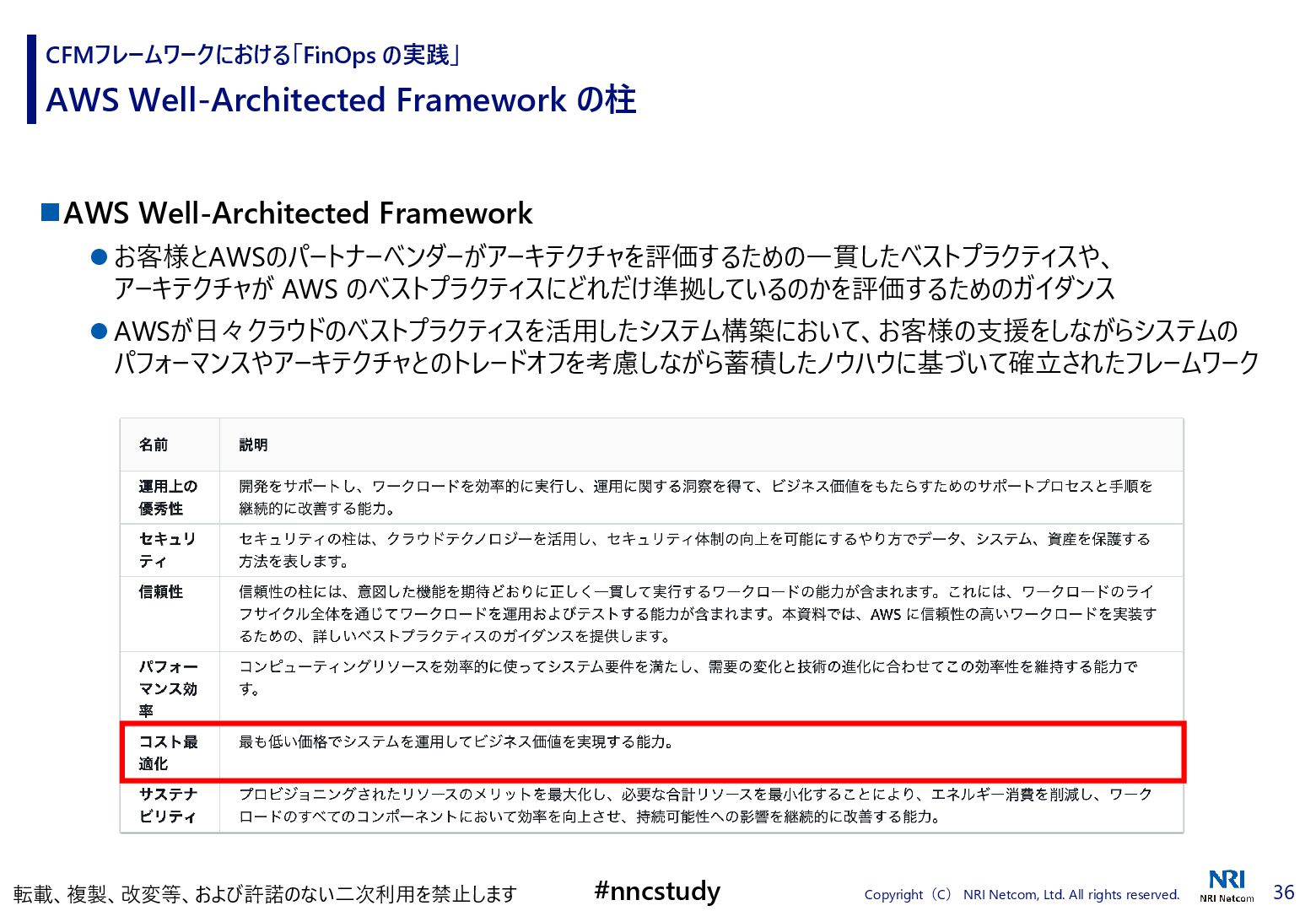 36. 36 Copyright(C) NRI Netcom, Ltd. All rights reserved. 転載、複製、改変等、および許諾のない二次利用を禁止します #nncstudy