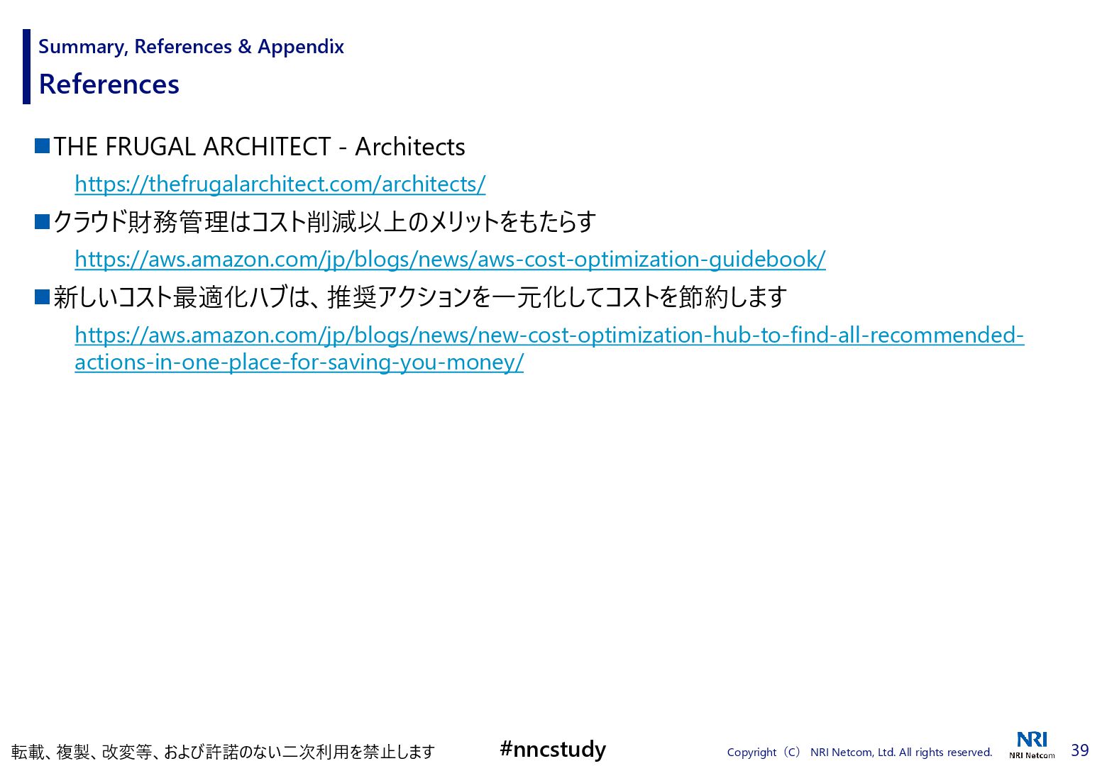 39. 39 Copyright(C) NRI Netcom, Ltd. All rights reserved. 転載、複製、改変等、および許諾のない二次利用を禁止します #nncstudy
