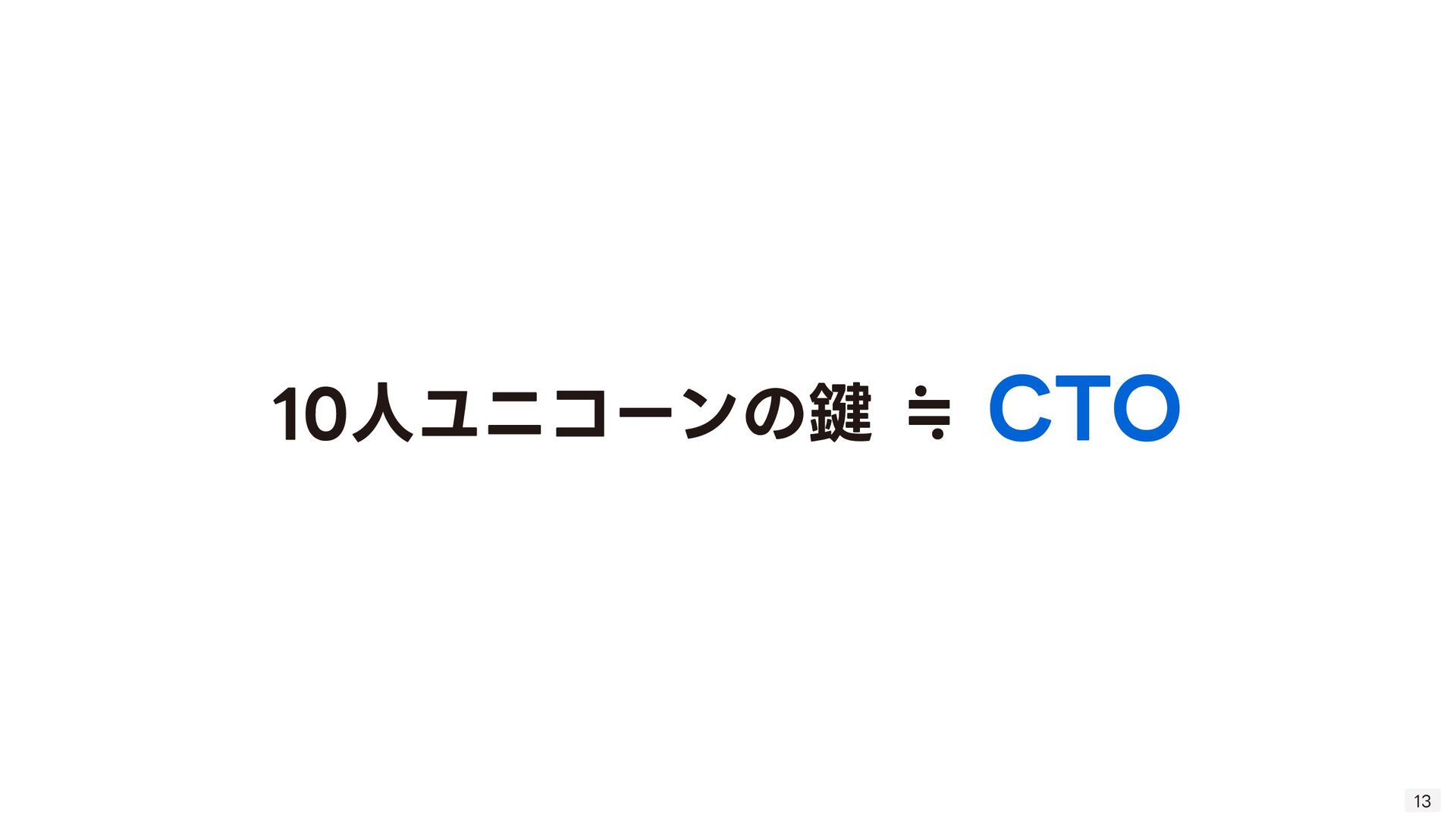 13 10⼈ユニコーンの鍵 ≒ CTO