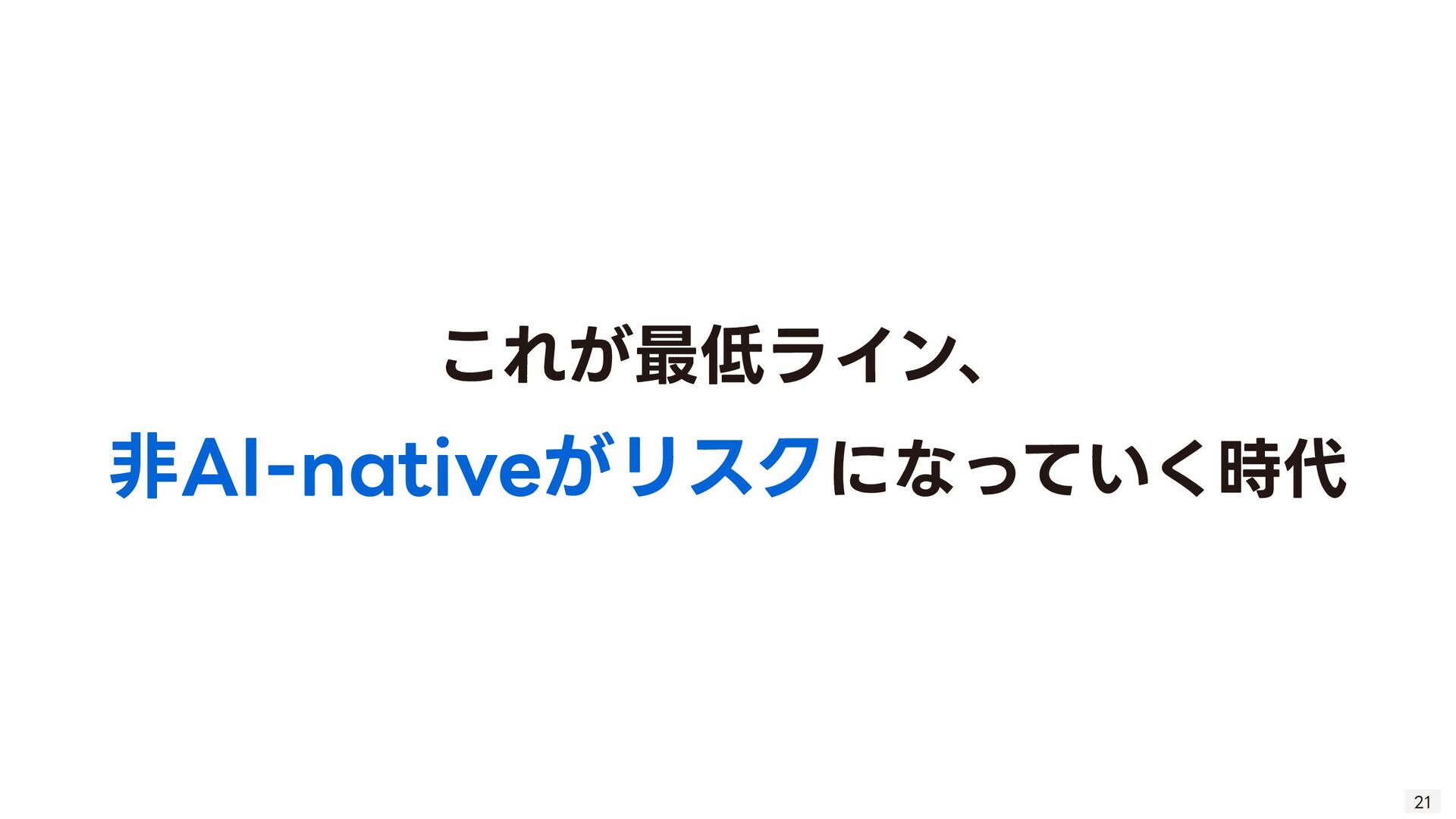 21 これが最低ライン、 ⾮AI-nativeがリスクになっていく時代