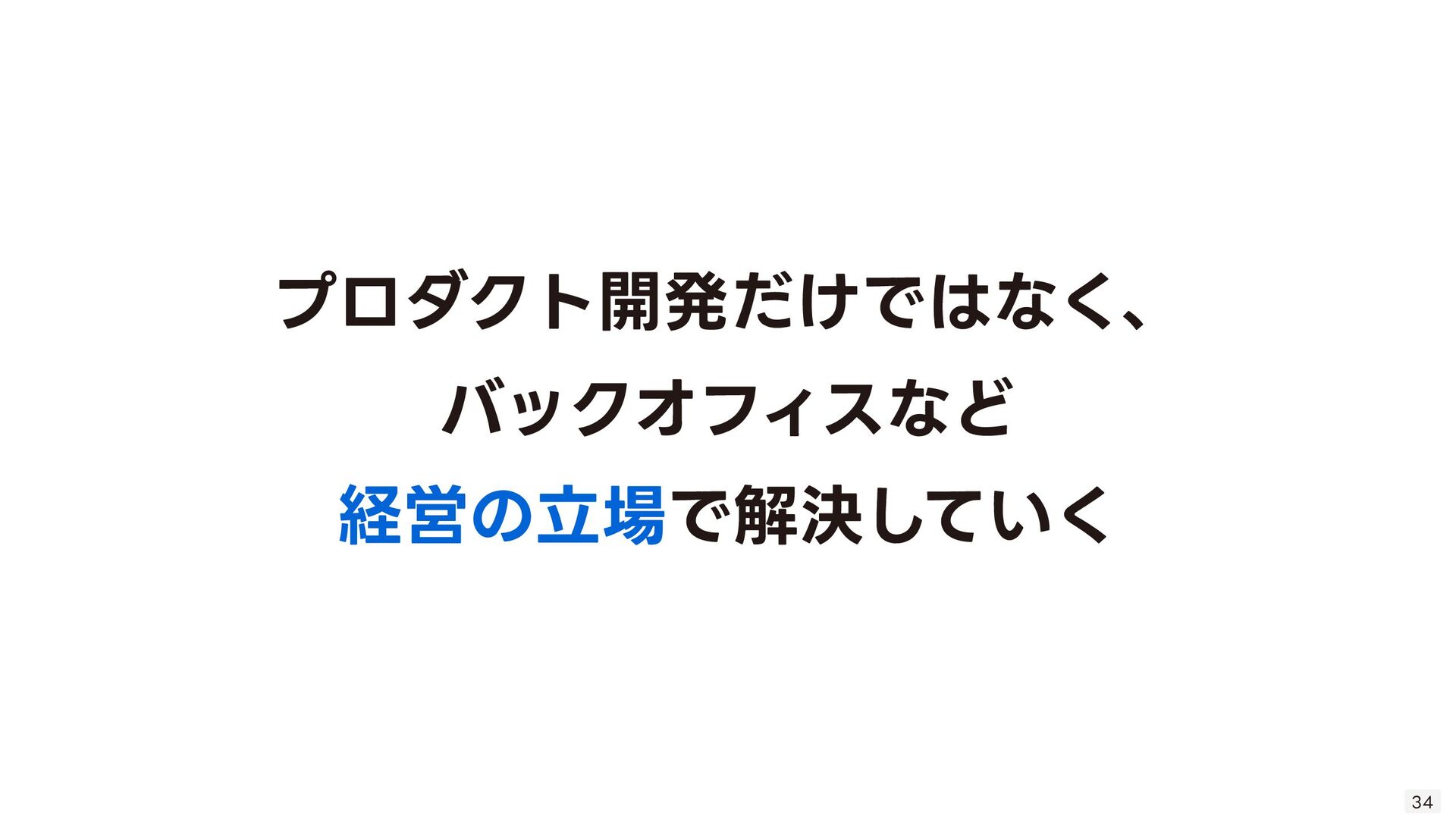 34 プロダクト開発だけではなく、 バックオフィスなど 経営の⽴場で解決していく