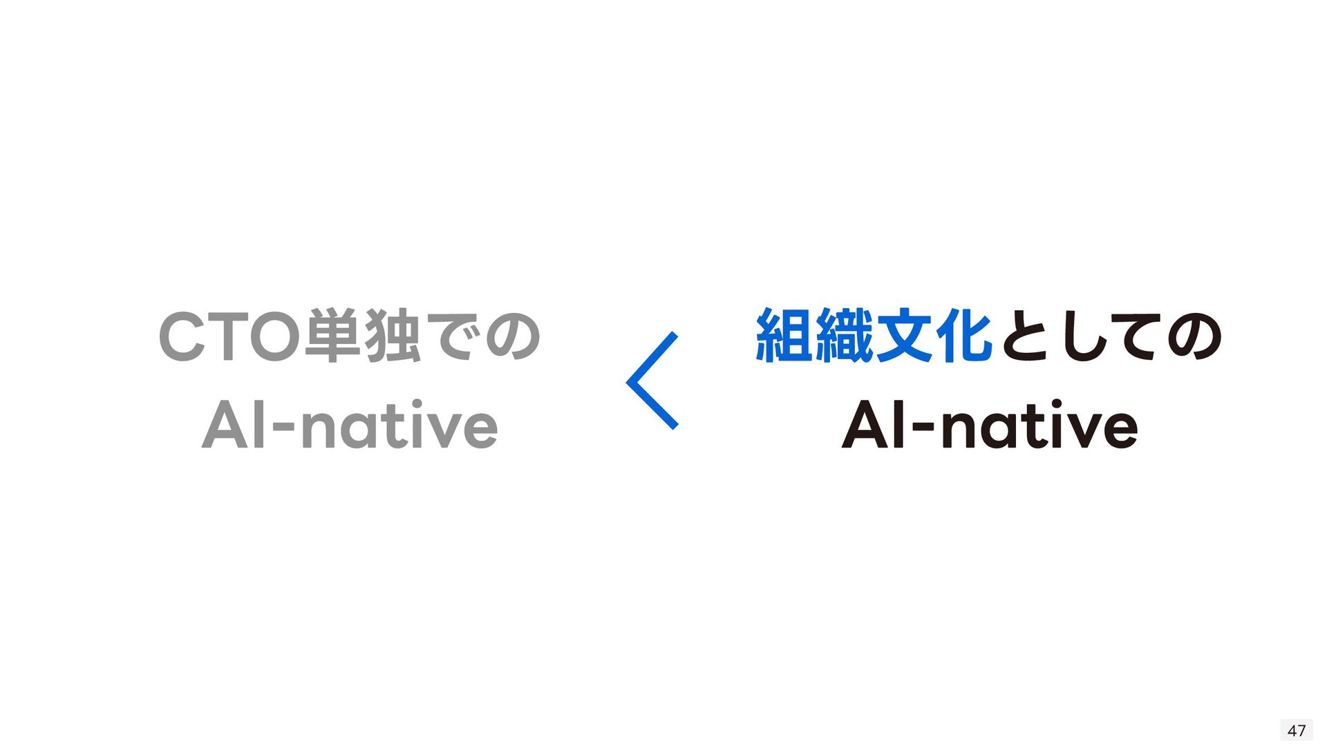 47 組織⽂化としての AI-native CTO単独での AI-native
