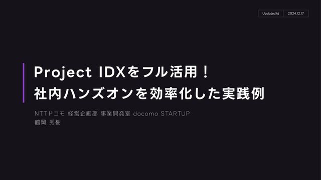 Project IDXをフル活 用 ! 社内ハンズオンを効率化した実践例 UpdatedAt 2024.12.17 NTTドコモ 経営企画部 事業開発室