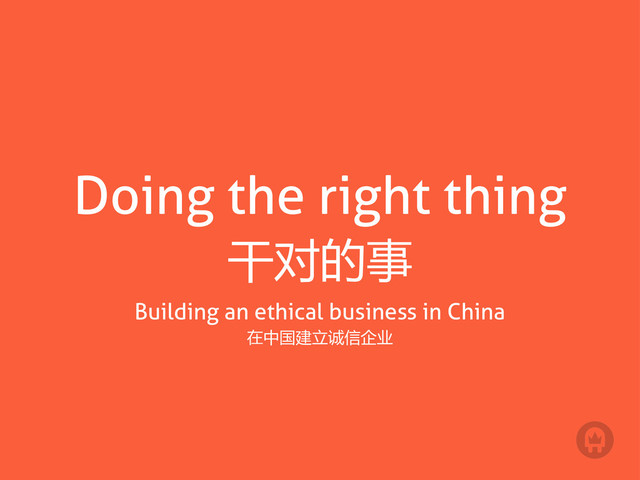 Doing the right thing 干对的事 Building an ethical business in