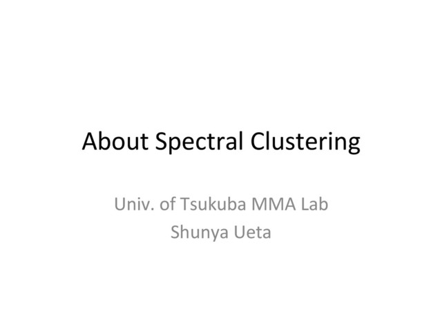 About Spectral Clustering Univ. of Tsukuba MMA Lab Shunya