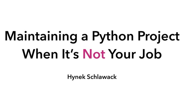 PyPI is a gold mine of great packages but those packages have to be written first. More often than not, projects that millions of people depend on are written and maintained by only one person. If you’re unlucky, that person is you! This talk tries to lighten the burden by giving you useful tools and approaches.