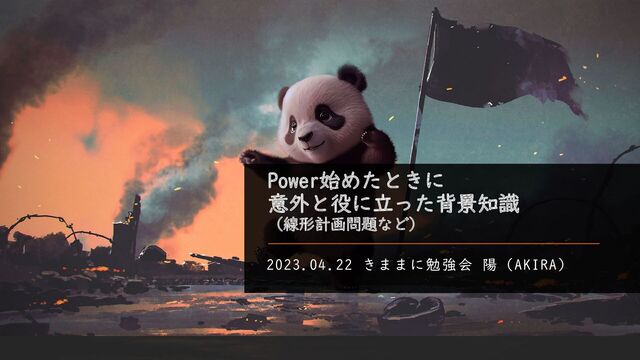 Power始めたときに 意外と役に立った背景知識 (線形計画問題など) 2023.04.22 きままに勉強会 陽(AKIRA)