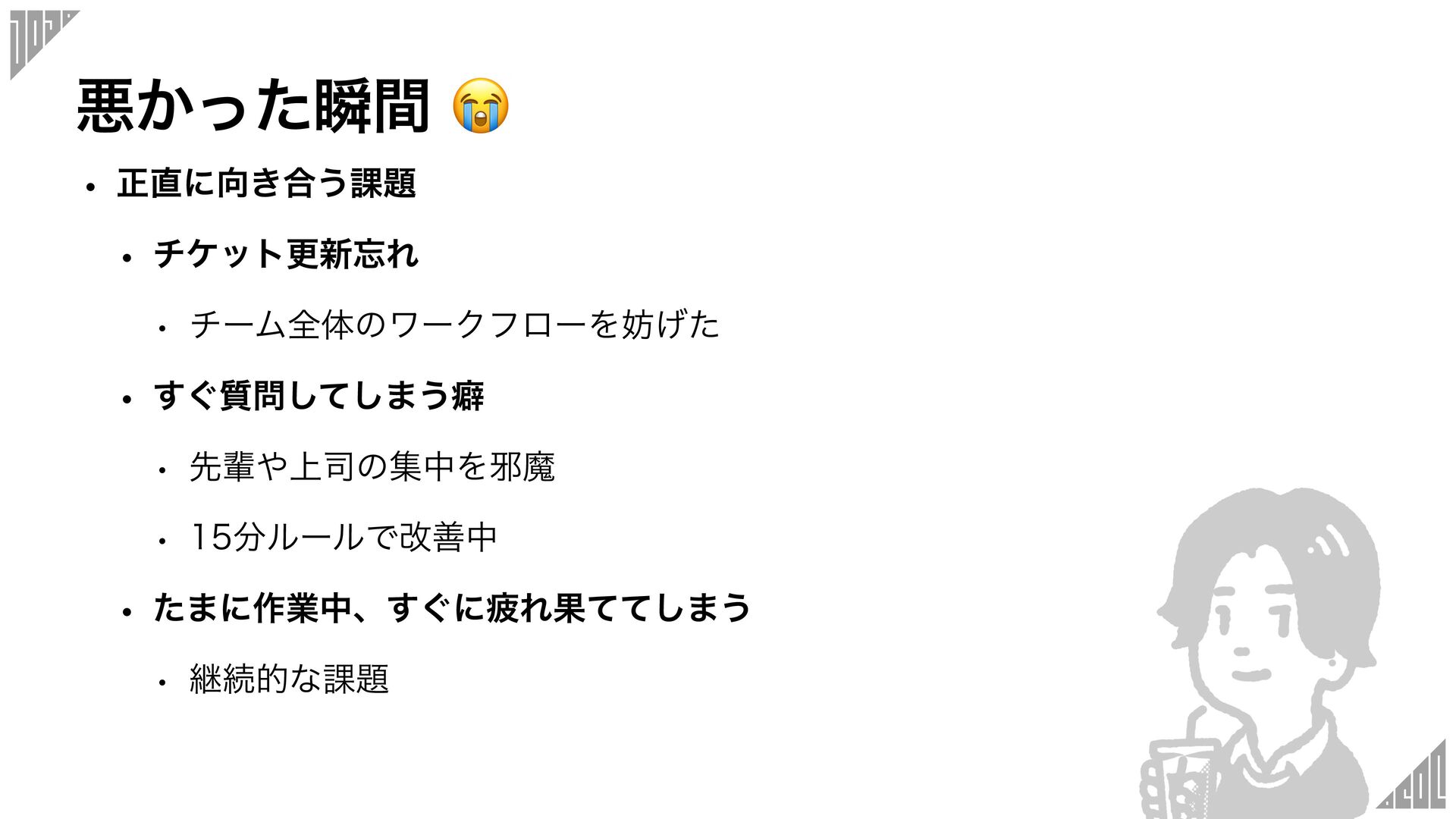 ઌഐ্࢘ͷूதΛअຐ w ϧʔϧͰվળத w ͨ·ʹ࡞ۀதɺ͙͢ʹർΕՌͯͯ͠·͏ w ܧଓతͳ՝