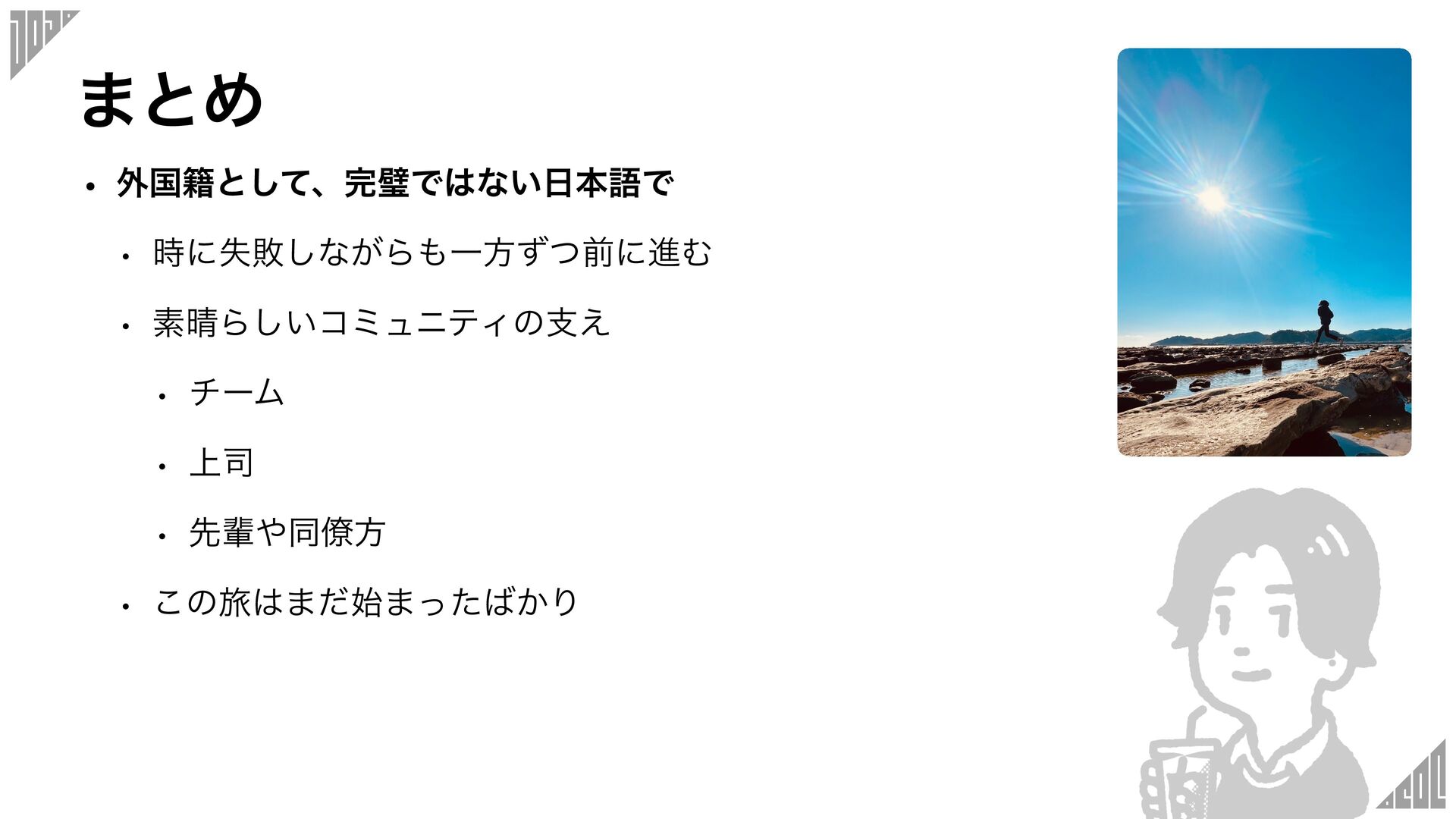 ·ͱΊ w ֎ࠃ੶ͱͯ͠ɺᘳͰͳ͍ຊޠͰ w ࣌ʹࣦഊ͠ͳ͕ΒҰํͣͭલʹਐΉ w ૉΒ͍͠ίϛϡχςΟͷࢧ͑ w νʔϜ w