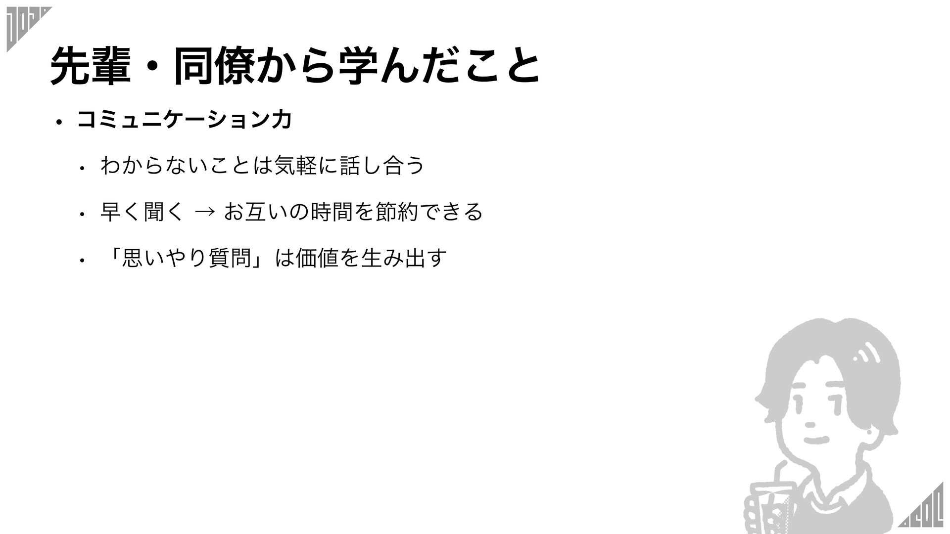 ઌഐɾಉ྅͔ΒֶΜͩ͜ͱ w ίϛϡχέʔγϣϯྗ w Θ͔Βͳ͍͜ͱؾܰʹ͠߹͏ w ૣ͘ฉ͘ˠ͓ޓ͍ͷ࣌ؒΛઅͰ͖Δ w ʮࢥ͍Γ࣭ʯՁΛੜΈग़͢ (FOVJOFJOUFSFTUJOPUIFST