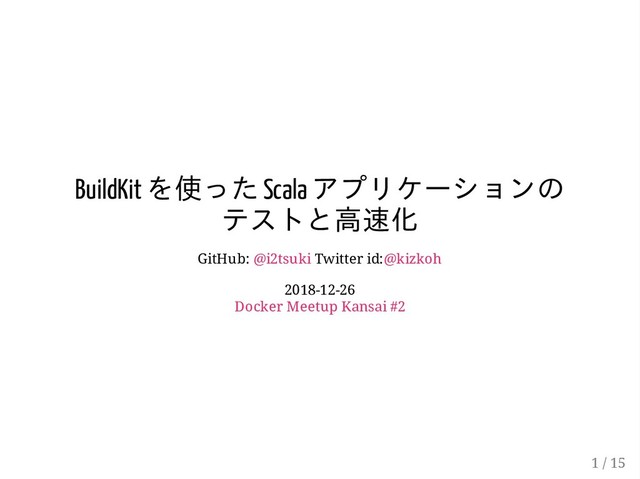 BuildKit を使った Scala アプリケーションの テストと高速化 GitHub: @i2tsuki Twitter id:@kizkoh 2018-12-26