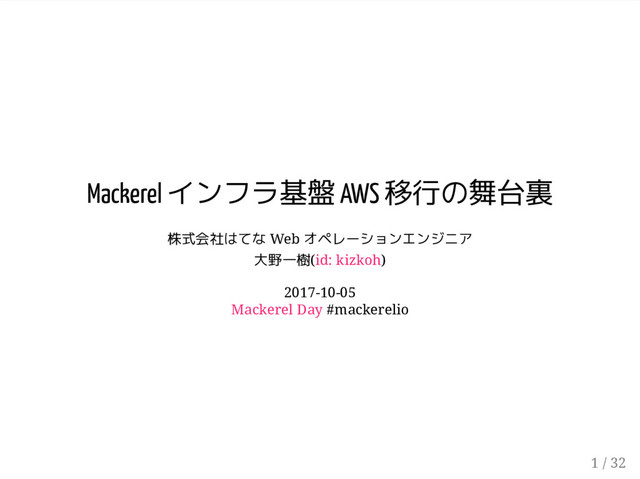 Mackerel インフラ基盤 AWS 移行の舞台裏 株式会社はてな Web オペレーションエンジニア 大野一樹(id: kizkoh) 2017-10-05
