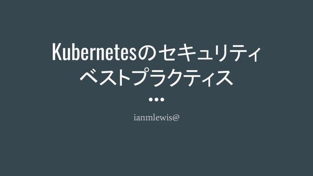 Kubernetesのセキュリティ ベストプラクティス ianmlewis@