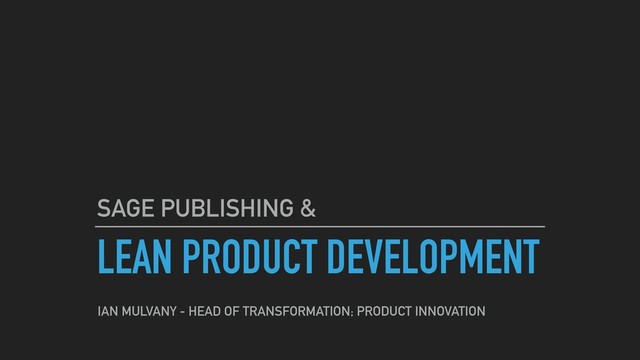 This presentation looks at lean product development tools that we have found useful at SAGE Publishing. We look at design thinking, innovation budgeting, lean canvas, lean value tree, kaizen iterations, frameworks for success and finally discuss some of the aspects of being a product manager within a lean process.