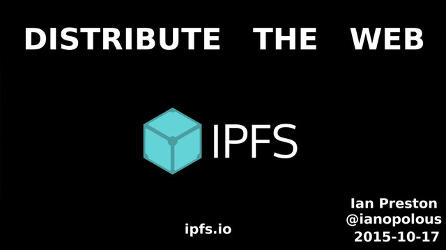 ipfs.io Ian Preston @ianopolous 2015-10-17 DISTRIBUTE THE WEB