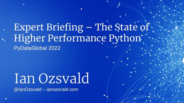 1. Expert Briefing – The State of Higher Performance Python @IanOzsvald