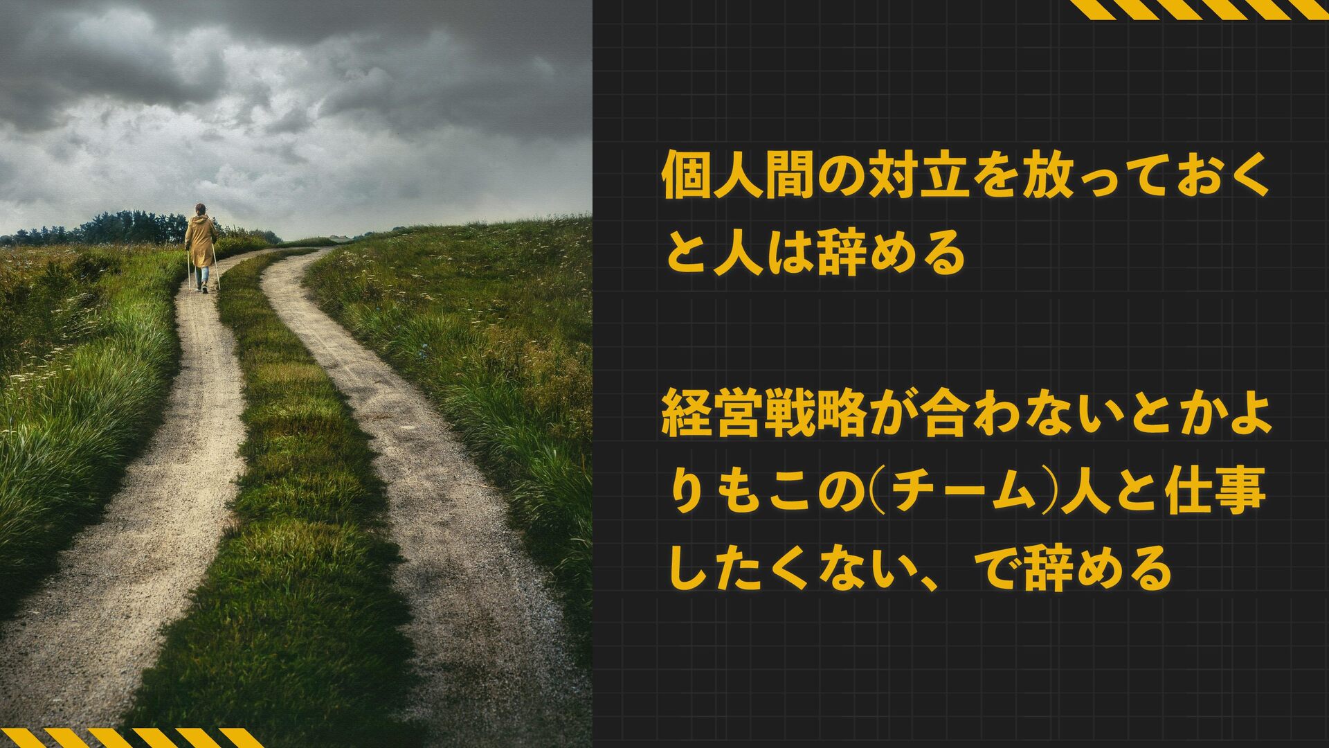 ݸਓؒͷରཱΛ์͓ͬͯ͘ ͱਓࣙΊΔ ܦӦઓུ͕߹Θͳ͍ͱ͔Α Γ͜ͷ νʔϜ ਓͱࣄ ͨ͘͠ͳ͍ɺͰࣙΊΔ