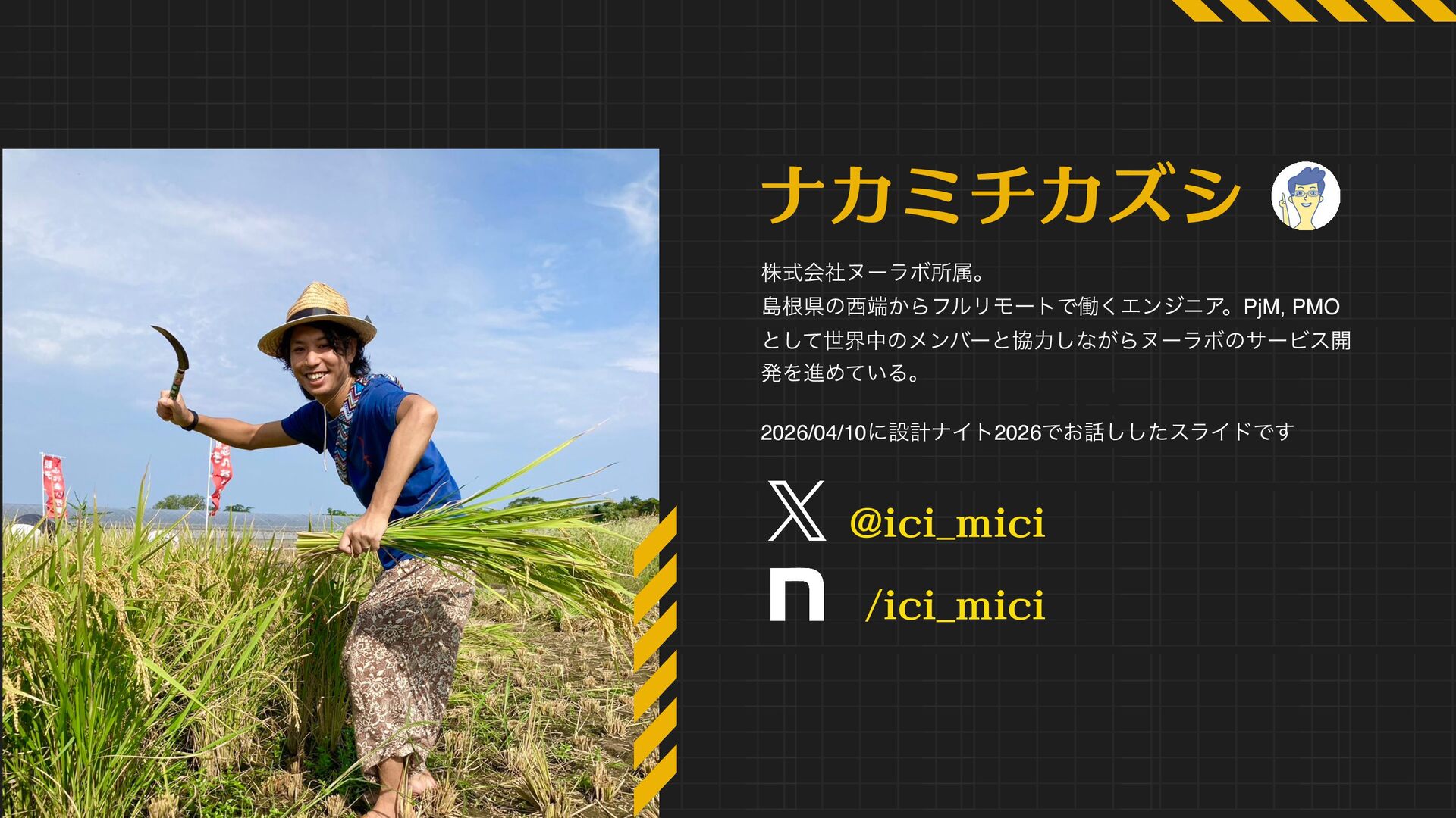ナカミチカズシ 03. גࣜձࣾψʔϥϘॴଐɻ ౡࠜݝͷ͔ΒϑϧϦϞʔτͰಇ͘ΤϯδχΞɻPjM, PMO ͱͯ͠ੈքதͷϝϯόʔͱڠྗ͠ͳ͕ΒψʔϥϘͷαʔϏε։ ൃΛਐΊ͍ͯΔɻ 2026/04/10ʹઃܭφΠτ2026Ͱ͓ͨ͠͠εϥΠυͰ͢ @ici_mici /ici_mici