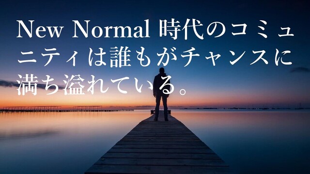 ニューノーマルな時代の中では場所という優位性は消え、一歩踏み出す勇気さえあれば、どこの誰でも新たなヒーローになる機会に溢れています。