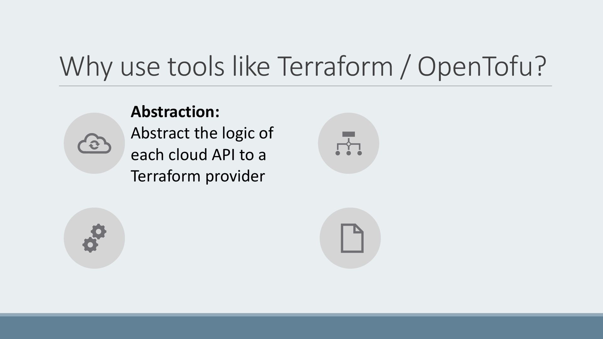 4. Why use tools like Terraform / OpenTofu? Abstraction: Abstract the