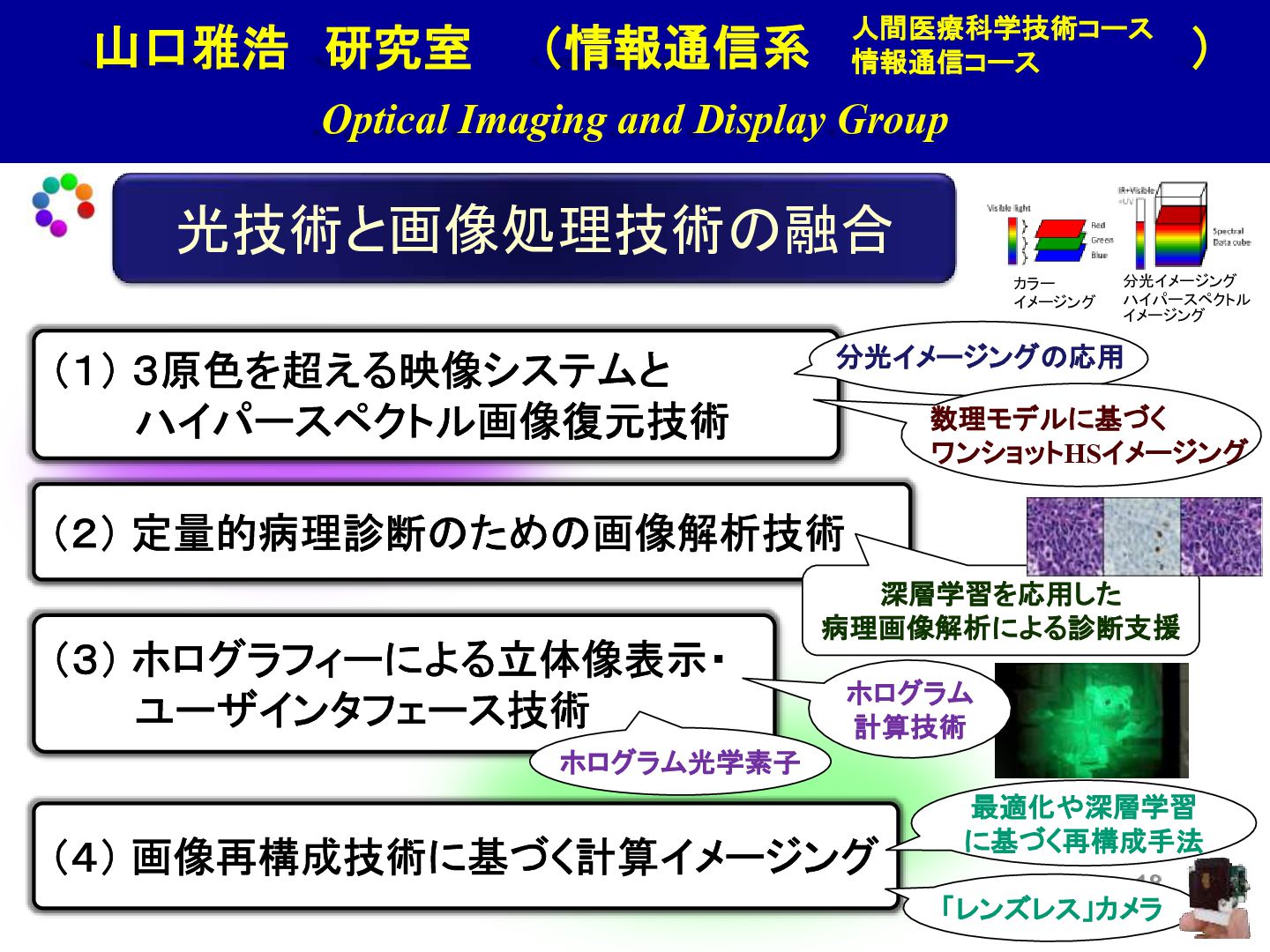 7. 山口雅浩 研究室 (情報通信系 ) Optical Imaging and Display Group 光技術と画像処理技術の融合