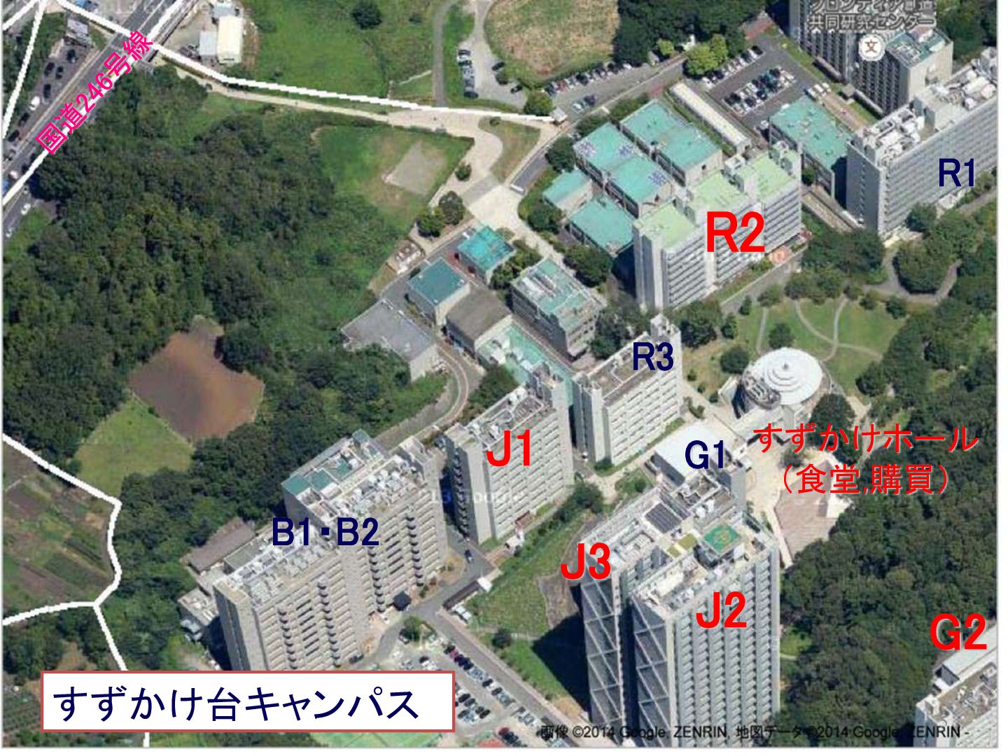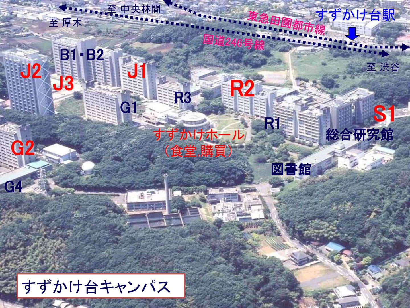 (食堂,購買) R3 S1 すずかけ台駅 J2 至 中央林間 至 渋谷 至 厚木 すずかけ台キャンパス J3 4