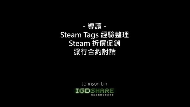 - 導讀 - Steam Tags 經驗整理 Steam 折價促銷 發行合約討論 Johnson