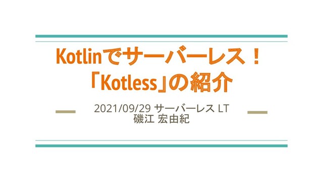 Kotlinでサーバーレス! 「Kotless」の紹介 2021/09/29 サーバーレス LT 磯江 宏由紀
