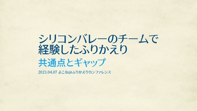 2023.04.07 よこな@ふりかえりカンファレンス シリコンバレーのチームで 経験したふりかえり 共通点とギャップ