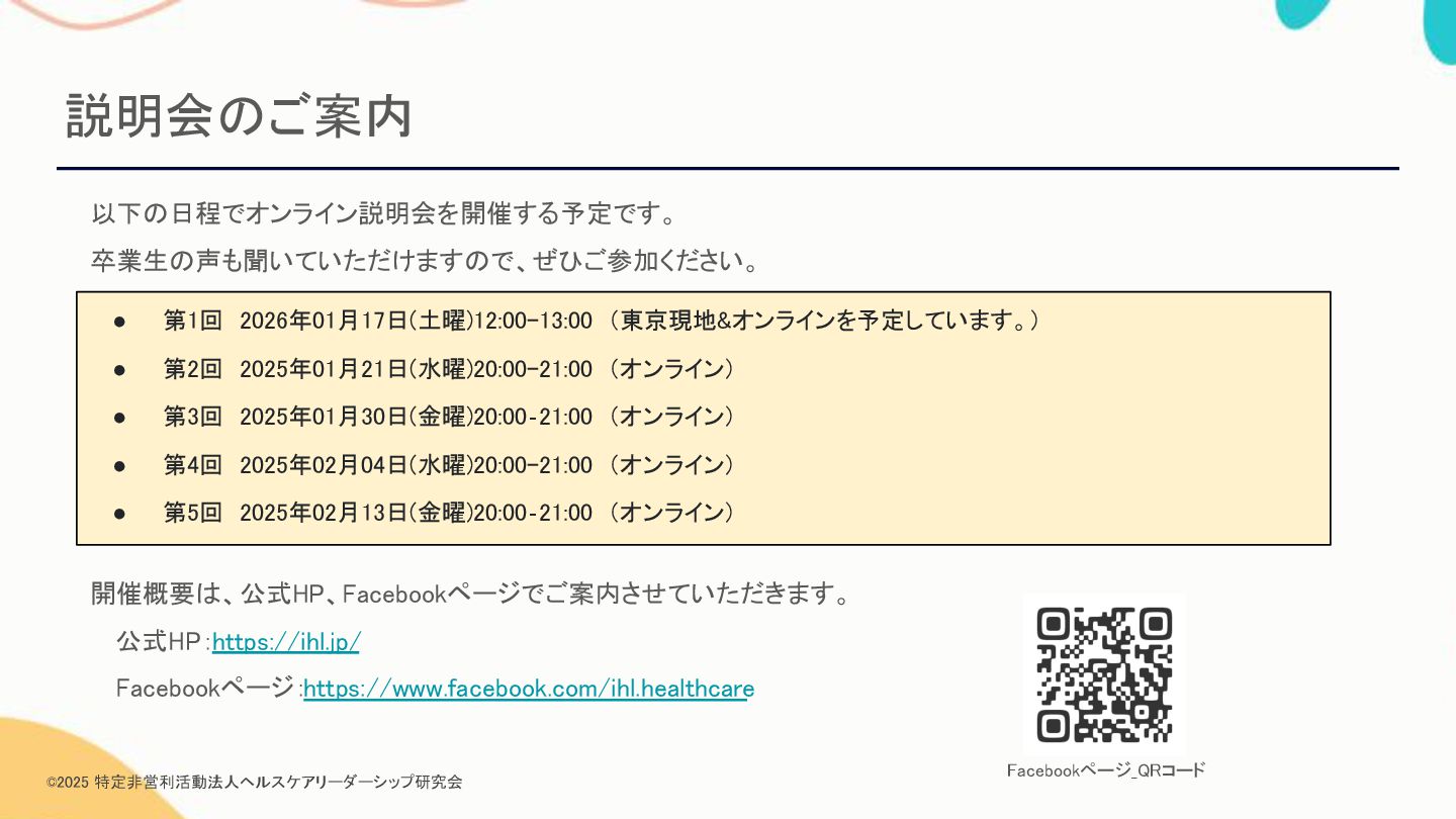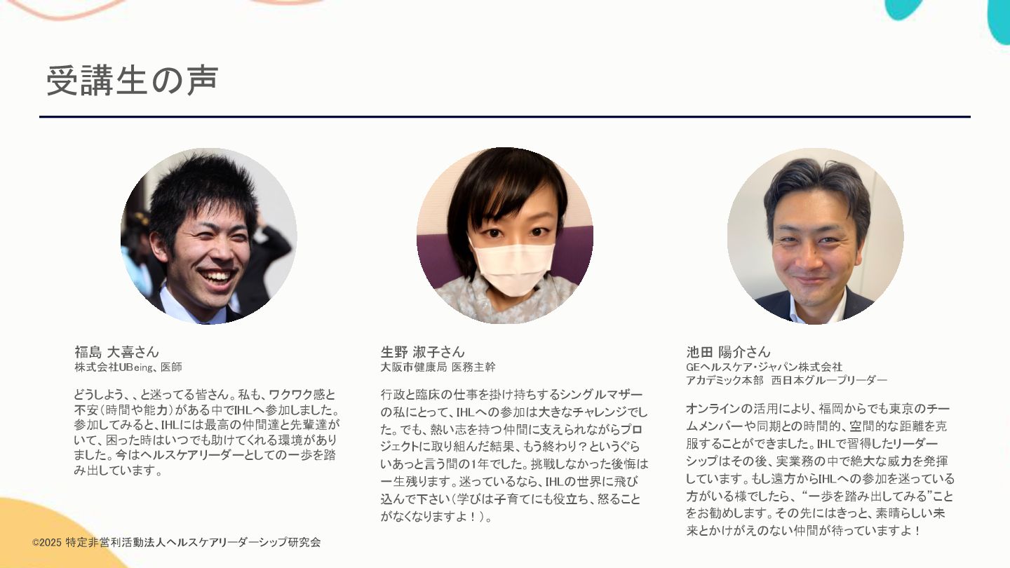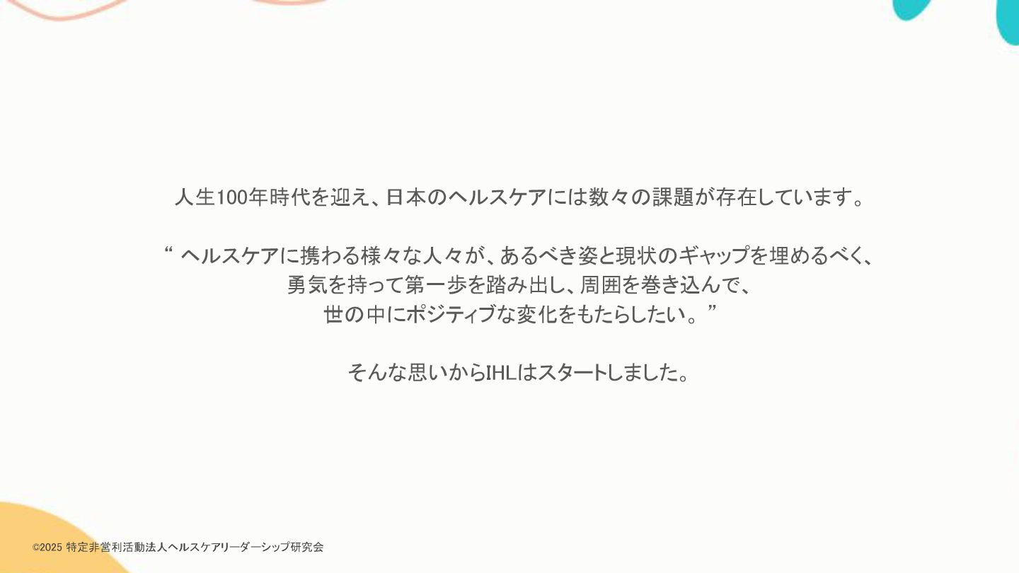 IHLヘルスケアリーダーシップ研究会17期 (プログラム期間:2026年4月〜2027年2月)のご紹介資料です。 募集要項はこちらからダウンロードください。 https://ihl.jp/recruit