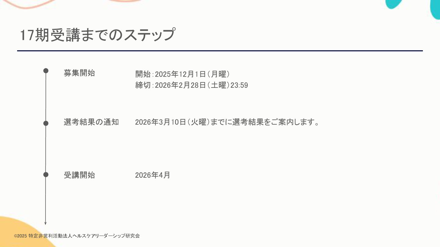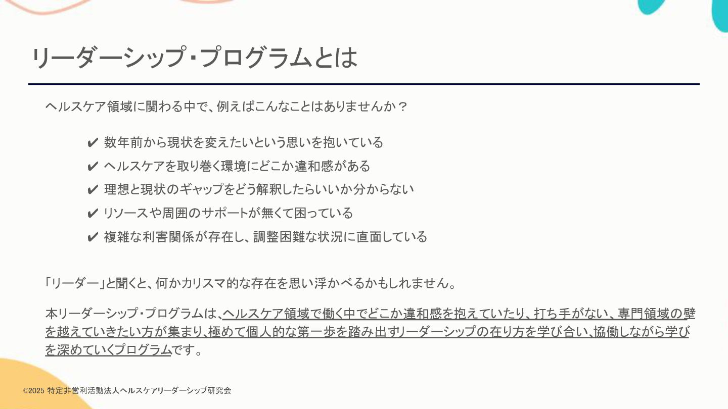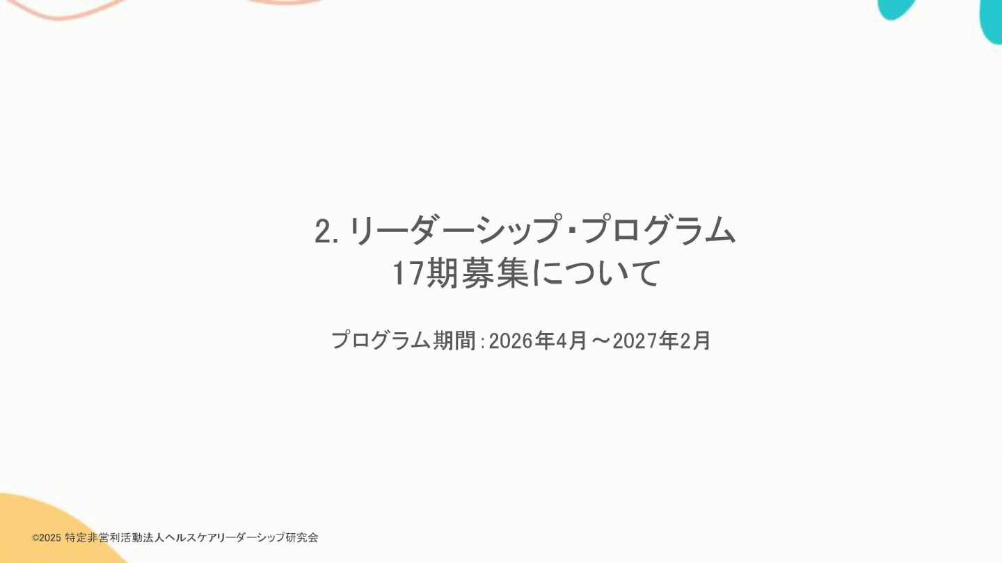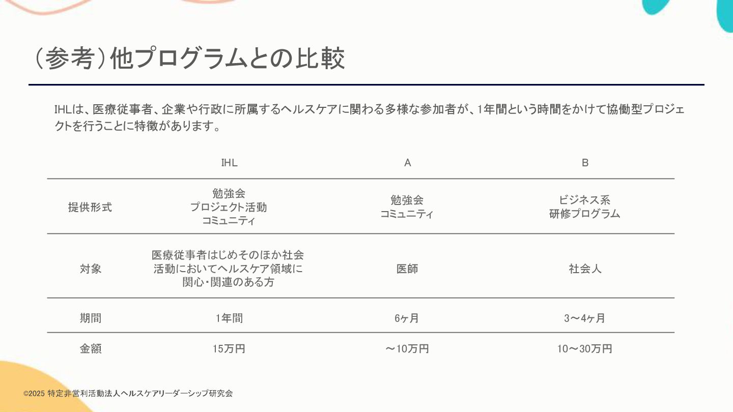IHLヘルスケアリーダーシップ研究会17期 (プログラム期間:2026年4月〜2027年2月)のご紹介資料です。 募集要項はこちらからダウンロードください。 https://ihl.jp/recruit