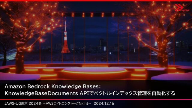 KnowledgeBaseDocuments API - new •データ解析戦略 - default - Foundation models - Data Automation(BDA) - new •チャンキング戦略 - default - 固定サイズ - Hierarchical - セマンティック - カスタム(Lambda) •埋め込みモデル - Titan Text Embeddings v2 - Cohere Embed Multilingual v3 •埋め込みタイプ - Floating-point vector embeddings - Binary vector embeddings •データ削除ポリシー - Delete - Retain •検索タイプ - ベクトル検索 - ハイブリッド検索 - セマンティック検索 •高度なデータ操作 - メタデータフィルタ(手動) - メタデータフィルタ(自動) - new - クエリ書き換え - Reranking - new Retrieval •ストアの種類 - OpenSearch Serverless - Aurora - MongoDB Atlas - Pinecone - Redis Enterprise Cloud - Neptune Analytics - new - Amazon Redshift - new - Amazon Kendra GenAI Index - new Store Generation •生成モデル - Amazon Titan - Anthropic Claude - Cohere Command - Meta Llama - Mistral - Amazon Nova - new •応答 - ストリーミング応答 - new •その他 - ガードレール - RAG評価 – new 本資料のテーマ Knowledge Basesで今できること Indexing ドキュメント •データソースの種類 - Amazon S3 - Web Crawler - Confluence - Salesforce - Sharepoint - Custom - new DataSource