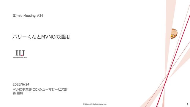 1. 1 © Internet Initiative Japan Inc. バリーくんとMVNOの運用 IIJmio Meeting #34