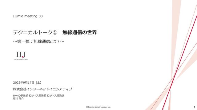 IIJmio meeting 33 2022年9月17日(土) MVNO事業部 ビジネス開発部 ビジネス開発課 石川 陽介