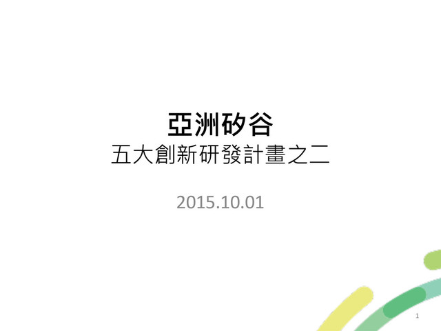 亞洲矽谷 五大創新研發計畫之二 2015.10.01 1