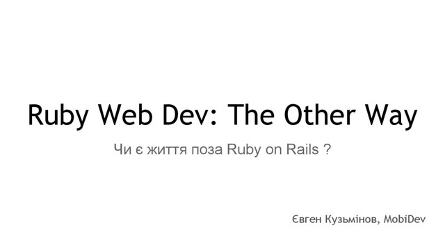 підлаштувань • Образ мислення розробників • Неосяжні зусилля, щоб “виростити” супротивника RoR • Без плюралізму та реального перезастосування коду • Потрібне розуміння кожного окремого компонента