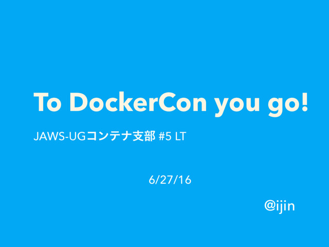 To DockerCon you go! JAWS-UGίϯςφࢧ෦ #5 LT @ijin 6/27/16
