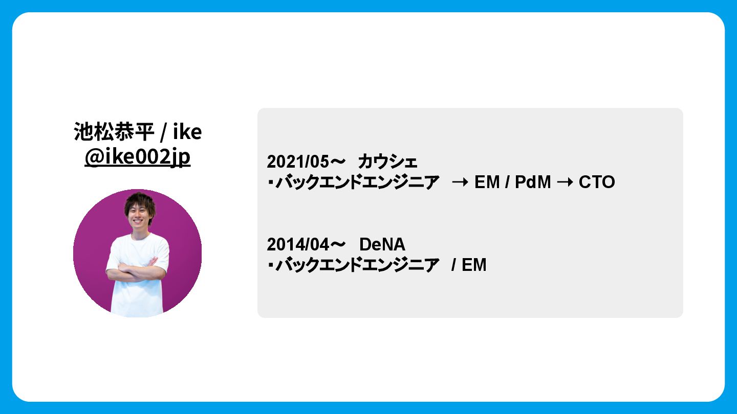 池松恭平 / ike @ike002jp 2021/05〜 カウシェ ・バックエンドエンジニア ➝ EM / PdM