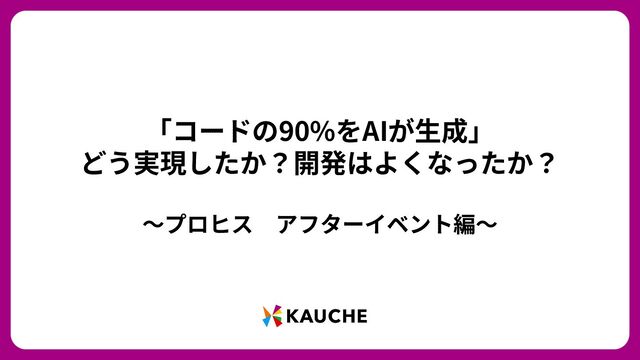「コードの90%をAIが⽣成」 どう実現したか?開発はよくなったか? 〜プロヒス アフターイベント編〜